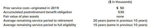 On January 1, 2024, Southeast amends the plan in response to spiraling health care costs. The amendment establishes an annual maximum of $3,000 for medical benefits that the plan will provide. The actuary determines that the effect of this amendment is to decrease the APBO by $80,000. Management amortizes prior service cost on a straight-line basis. The interest rate is 8%. The service cost for 2024 is $114,000.