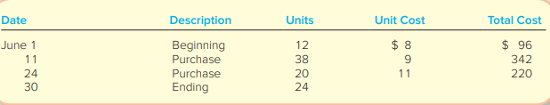 > During the month of June, Ace Incorporated purchased goods from two suppliers. The sequence of events was as follows: Required: Assume that Ace uses a perpetual inventory system and that the company had no inventory on hand at the beginning of the month