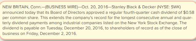 Stanley Black & Decker is a leading global manufacturer and marketer of power tools, hardware, and home improvement products. A press release contained the following announcement: