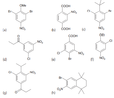 OMe COOH Br- Br NO2 Rr (a) NO2 (b) COOH (c) NO2 OEt COOH NO, .CI NO2 (d) CI (e) Br (f) NO, NO2 Br- O,N (h) (g)