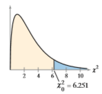 > Find the critical value(s) and rejection region(s) for the type of chi-square test with sample size n and level of significance α. Right-tailed test, n = 10, α = 0.10