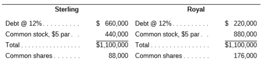 Sterling Optical and Royal Optical both make glass frames and each is able to generate earnings before interest and taxes of $132,000.