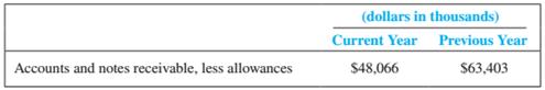 (dollars in thousands) Current Year Previous Year Accounts and notes receivable, less allowances $48,066 $63,403