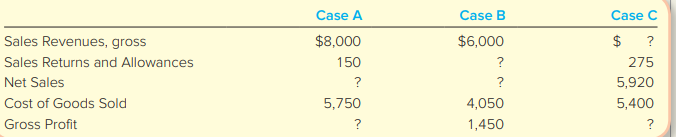 Supply the missing dollar amounts for the income statement of Williamson Company for each of the following independent cases: