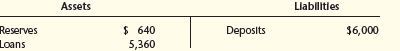 Assets Llabilities Reserves $ 640 5,360 Deposits $6,000 Loans