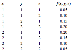 Suppose that the random variables X, Y, and Z have the following joint probability distribution.