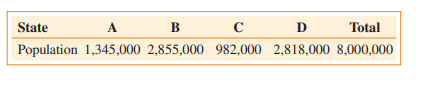 > Suppose that turtles tan is a small country with a population of 8,000,000 that consists of four states, A, B, C, and D. There are 160 seats in the legislature that need to be apportioned among the four states. The population of each state is shown in th
