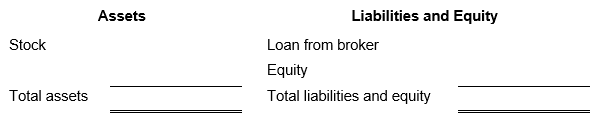 Suppose that you just purchased 100 shares of Beta Bananaâs stock for $40 per share. The initial margin requirement is 60%, which means the amount borrowed is $1,600. The corresponding balance sheet is below: