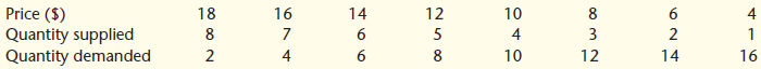 Price ($) Quantity supplied Quantity demanded 18 16 14 12 10 8 6 4 8 7 6 4 3 2 1 2 4 6 8 10 12 14 16