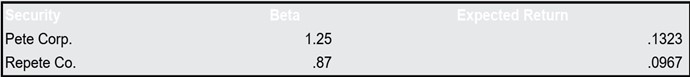 > Suppose you observe the following situation:a. Calculate the expected return on each stock.b. Assuming the capital asset pricing model holds and Stock A’s beta is greater than Stock B’s beta by .35, what is the expecte