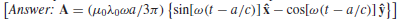 Suppose you take a plastic ring of radius a and glue charge on it, so that the line charge density is λ0 sin(θ/2) . Then you spin the loop about its axis at an angular velocity Ï. Find the (exact) scalar and vector potentials at the center of the ring.
