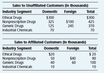 Sales to Unaffiliated Customers (in thousands) Industry Segment Domestic Foreign Total Ethical Drugs Nonprescription Drugs Generic Drugs Industrial Chemicals $300 325 125 $300 $100 245 425 370 70 70 Sales to Affiliated Customers (in thousands) Industry Segment Ethical Drugs Nonprescription Drugs Generic Drugs Industrial Chemicals Domestic Foreign Total $ 20 $20 50 40 $40 60 90 100 10 10