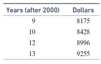 Years (after 2000) 9 10 12 13 Dollars 8175 8428 8996 9255