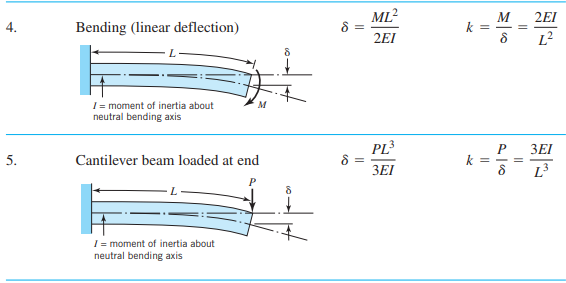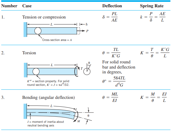 TABLE 5.1 Deflection and Stiffness Formulas for Straight Bars (Rods, Beams) of Uniform Section