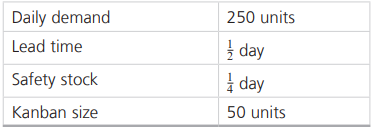 Tej Dhakarâs company wants to establish kanbans to feed a newly established work cell. The following data have been provided. How many kanbans are needed?