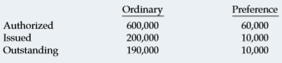 > Weisberg Corporation has 10,000 shares of $100 par value, 6%, preference shares and 50,000 ordinary shares of $10 par value outstanding at December 31, 2017. Instructions Answer the questions in each of the following independent situations. a. If the