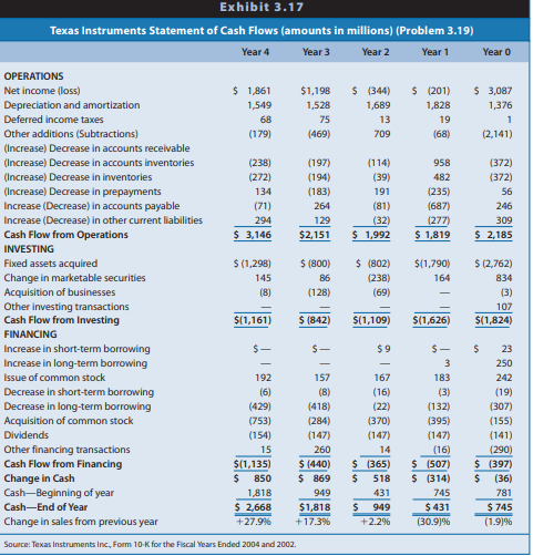 > Gap Inc. Operates chains of retail clothing stores under the names of Gap, Banana Republic, and Old Navy. Exhibit 3.19 presents the statement of cash flows for Gap for Year 0 to Year 4 REQUIRED: Discuss the relations between net income and cash flow fro