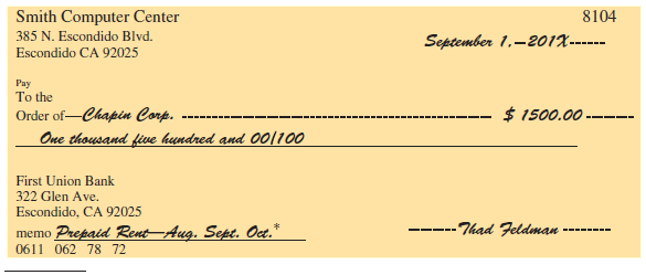 *One check is written for 3 monthsâ rent on September 1. That included August rent. For this problem, consider it all prepaid.