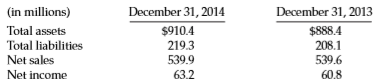 (in millions) December 31, 2014 December 31, 2013 Total assets $910.4 219.3 $888.4 208.1 539.6 Total liabilities Net sales 539.9 Net income 63.2 60.8