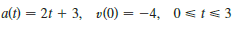 > The acceleration function (in m/s2) and the initial velocity are given for a particle moving along a line. Find (a) the velocity at time and (b) the distance traveled during the given time interval.