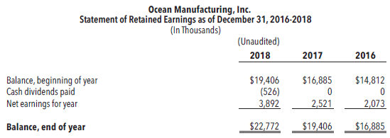 You acquired the past three yearsâ financial statements from Ocean, including the unaudited statements for the most recent year ended December 31, 2018.This financial information is provided on the pages that follow. The partner who will be in charge of the Ocean engagement, Jane Hunter, wants you to look them over to see what information you can draw from them, paying particular attention to items that might be helpful in determining whether or not to accept Ocean as a new audit client.