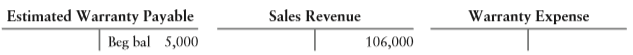Estimated Warranty Payable Sales Revenue Warranty Expense Beg bal 5,000 106,000