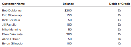The accounts receivable subsidiary ledger for Ravalliâs Lawn Care has the following customer accounts and balances at the end of the current year. What should be the Accounts Receivable balance in the general ledger? [Hint: Customer accounts with a credit balance are not considered in determining the total balance in the Accounts Receivable account; rather these amounts are reclassified as Accounts Payable