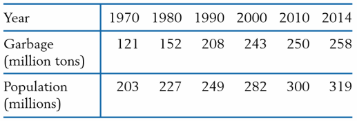 (a) Plot the amount of garbage (millions of tons) versus population (millions).