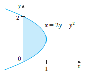 The area of the region that lies to the right of the -axis and to the left of the parabola x = 2y â y2 (the shaded region in the figure) is given by the integral f02(2y â y2) dy. (Turn your head clockwise and think of the region as lying below the curve x = 2y â y2 from y = 0 to y = 2.) Find the area of the region.