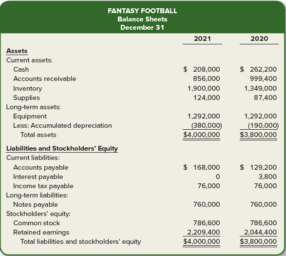The balance sheets for Fantasy Football for 2021 and 2020 are provided below.