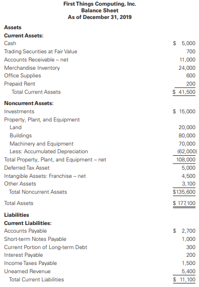 The CFO of First Things Computing, Inc. (FTC) prepared the following balance sheet as of December 31, 2019.