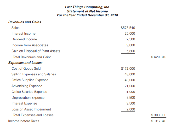 The CFO of Last Things Computing, Inc. (LTC) prepared the following balance sheet and statement of net income for the year ended December 31, 2018.