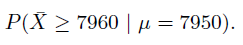 (b) Is an observed ¯x = 7960 in this experiment firm evidence that the population mean for the process exceeds the government limit? Answer your question by computing