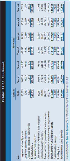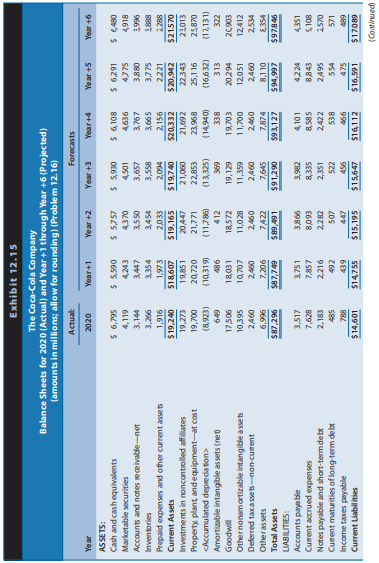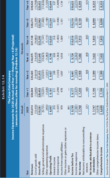 > The Coca-Cola Company is a global soft drink beverage company (ticker: KO). The data in Chapter 12’s Exhibits 12.14, 12.15, and 12.16 (pages 712–715) include the actual amounts for 2020 and projected amounts for Year 11 to Year 16 for the income statemen