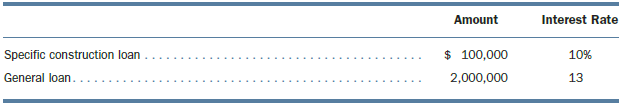 Amount Interest Rate Specific construction loan $ 100,000 10% General loan. 2,000,000 13