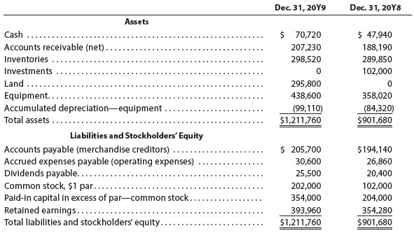 The comparative balance sheet of Merrick Equipment Co. for December 31, 20Y9 and 20Y8, is as follows: