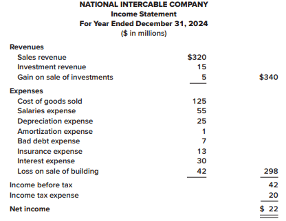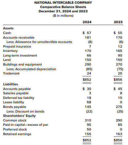The comparative balance sheets for 2024 and 2023 and the statement of income for 2024 are given below for National Inferable Company. Additional information from NICâs accounting records is provided also.