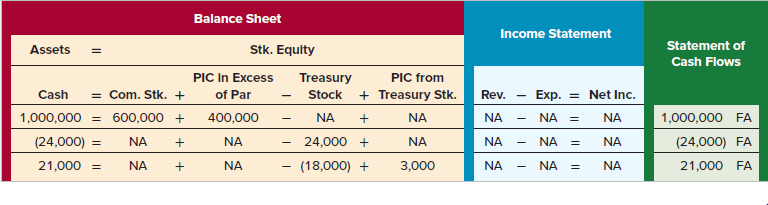 > The Corners Corporation experienced three events that affected its financial statements, as shown in the following table. Assume that the original issue (Event 1) was for 400,000 shares, and the treasury stock was acquired for $4 per share (Event 2). Req