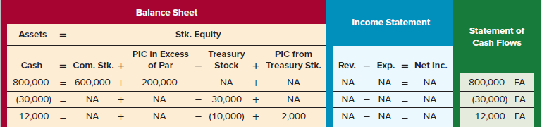 The Corners Corporation experienced three events that affected its financial statements, as shown in the following table. Assume that the original issue (Event 1) was for 400,000 shares, and the treasury stock was acquired for $4 per share (Event 2).