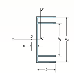 The cross section of a channel beam with double flanges and constant thickness throughout the section is shown in the figure.
