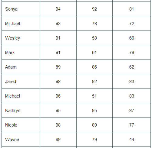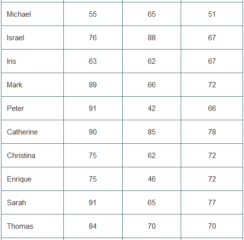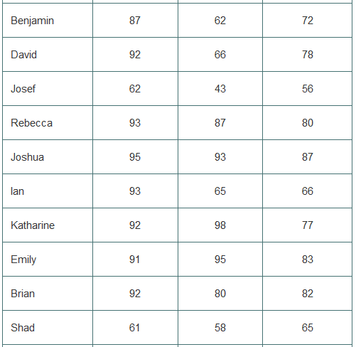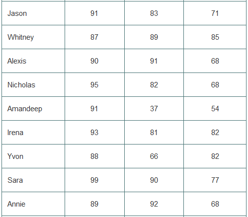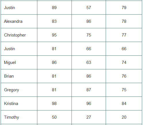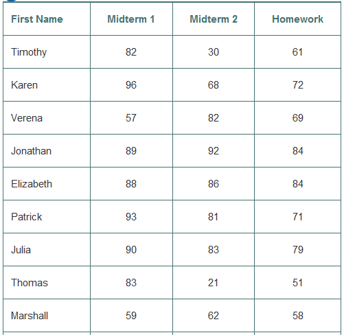 The dataset below shows midterm and homework scores from an introductory statistics course.
