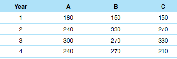The directors of Summer and Rayne, a partnership of investors, have three independent investment projects before them for consideration. Each will cost $600 000 in the first instance. The net cash inflows in thousands of dollars each year of the projects are projected to be as in the following table. There is thought to be no residual value for any of the projects. The directors work on 10 per cent as their RRR. Ignore taxation effects and assume all cash flows occur at the end of the relevant years.