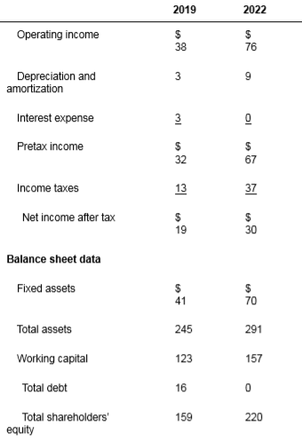 a. Calculate each of the five components listed above for 2019 and 2022, and calculate the return on equity (ROE) for 2019 and 2022, using all of the five components.