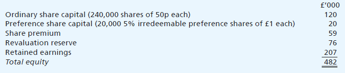 > (a) The share capital of Fogarino Ltd consists of 250,000 fully-paid ordinary (or ‘equity’) shares of 10 pence each, all of which were issued at a premium of 30 pence per share. The current market value of the company’s shares is 95 pence each. What is t