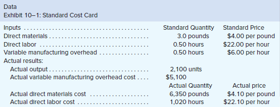 c. What is the variable overhead efficiency variance? What is the variable overhead rate variance?