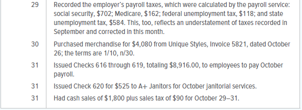 12. Prepare a classified balance sheet as of October 31, 20X1.