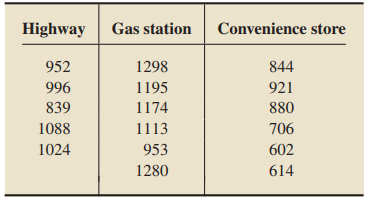The Federal Bureau of Investigation conducts surveys to obtain information on the value of losses from various types of robberies. Results of the surveys are published in Population-at-Risk Rates and Selected Crime Indicators. Independent simple random samples of reports for three types of robberies— highway, gas station, and convenience store—gave the following data, in dollars, on value of losses.