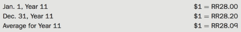 ⢠On January 1, Year 11, the inventory was RR525,000 and was acquired when the average exchange rate was RR28.27.
