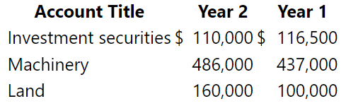 2. Old machinery with a book value of $8,000 (cost of $36,000 minus accumulated depreciation of $28,000) was sold. The income statement showed a gain on the sale of machinery of $4,500.