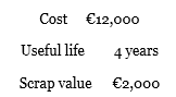 (b) Calculate the depreciation charge for each of the four years under the reducing balance method using a depreciation percentage of 40 per cent.